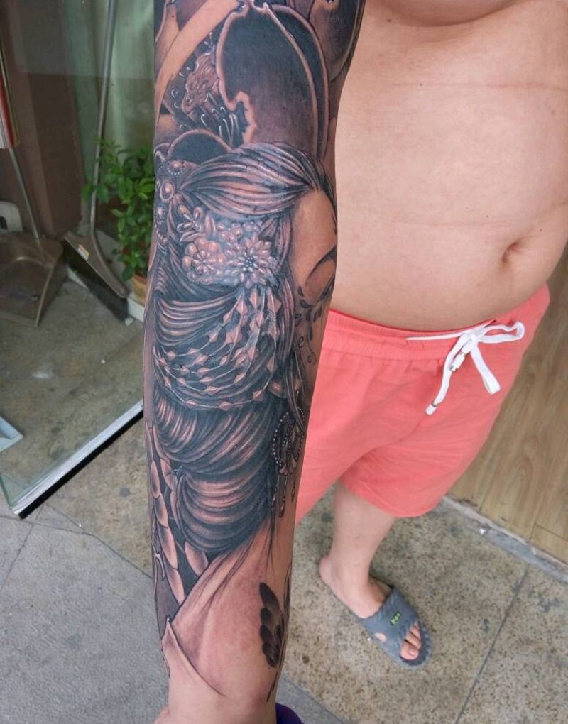 鲤鱼艺伎纹身图片_肩部手臂传统肖像动物人物成品纹身图案