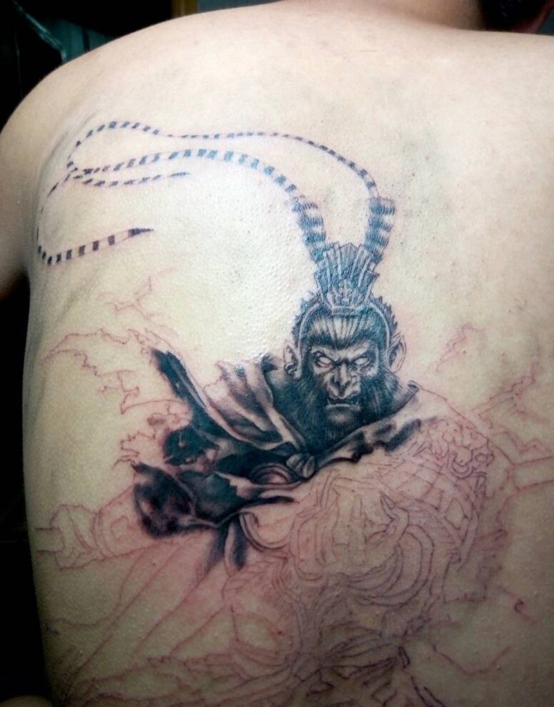 满背大圣纹身图片_背部传统宗教成品纹身图案