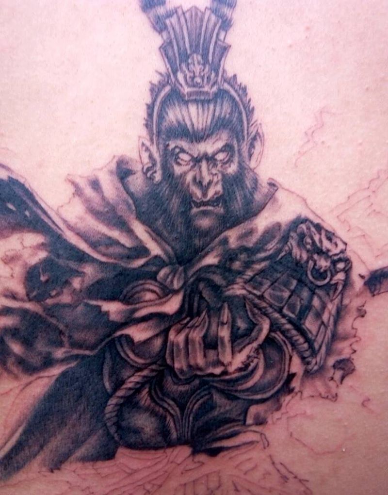 满背大圣纹身图片_背部传统宗教成品纹身图案