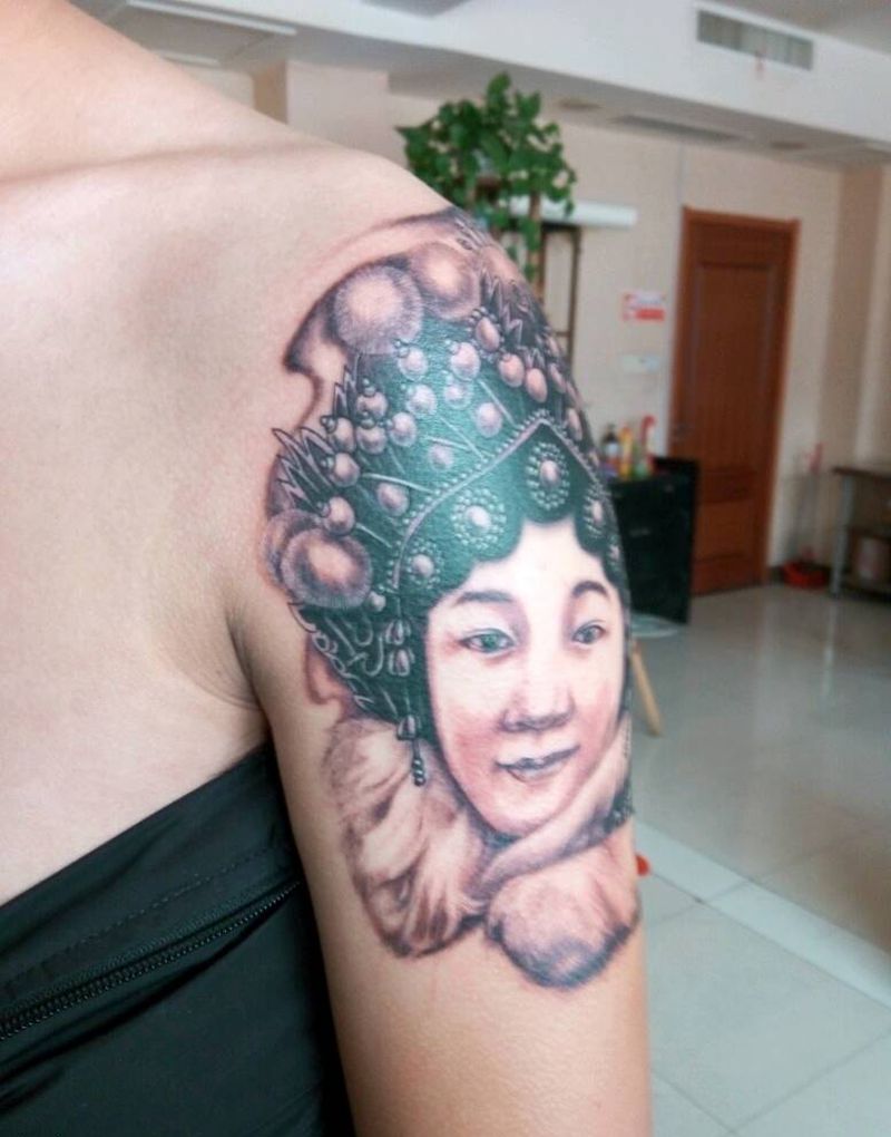 刀马旦纹身图片_肩部肖像人物成品纹身图案