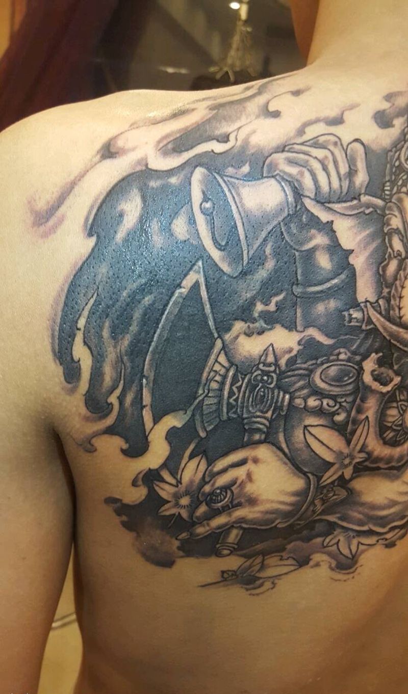 • 纹身吧推荐的披肩图腾半胛纹身图案作品展示