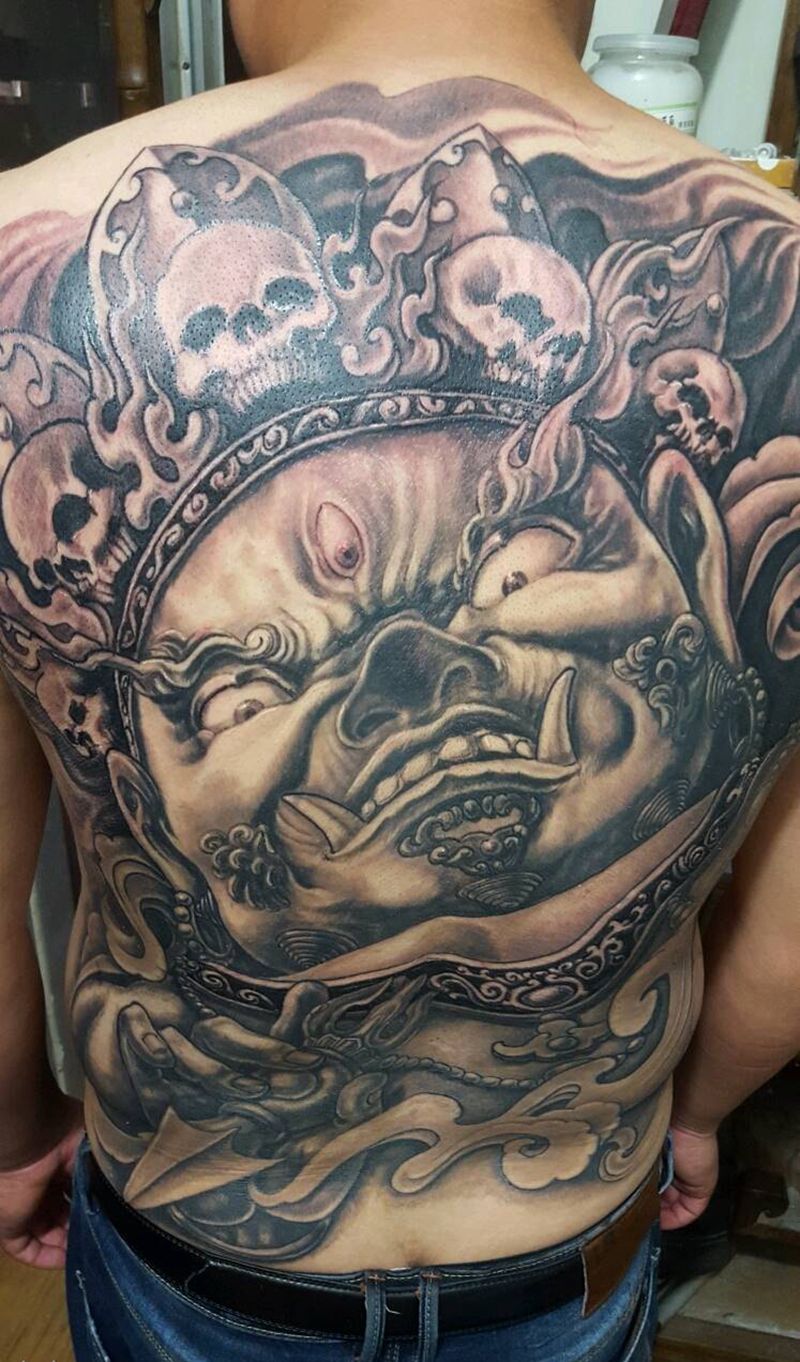 明王纹身图片_背部传统人物鬼神宗教成品纹身图案