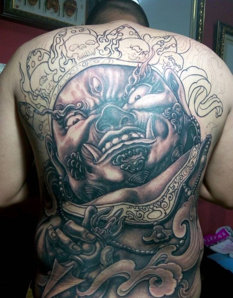 明王纹身图片_背部传统人物鬼神宗教成品纹身图案