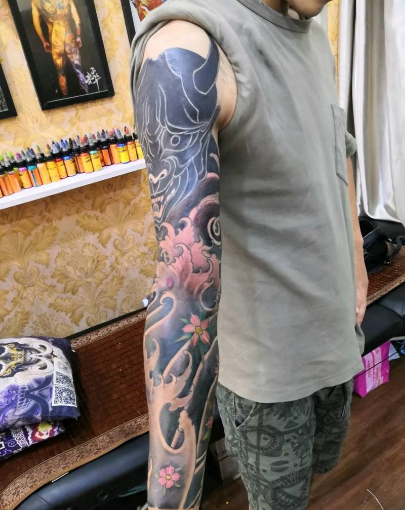 般若浪臂遮盖纹身图片_手臂新传统纹身图案