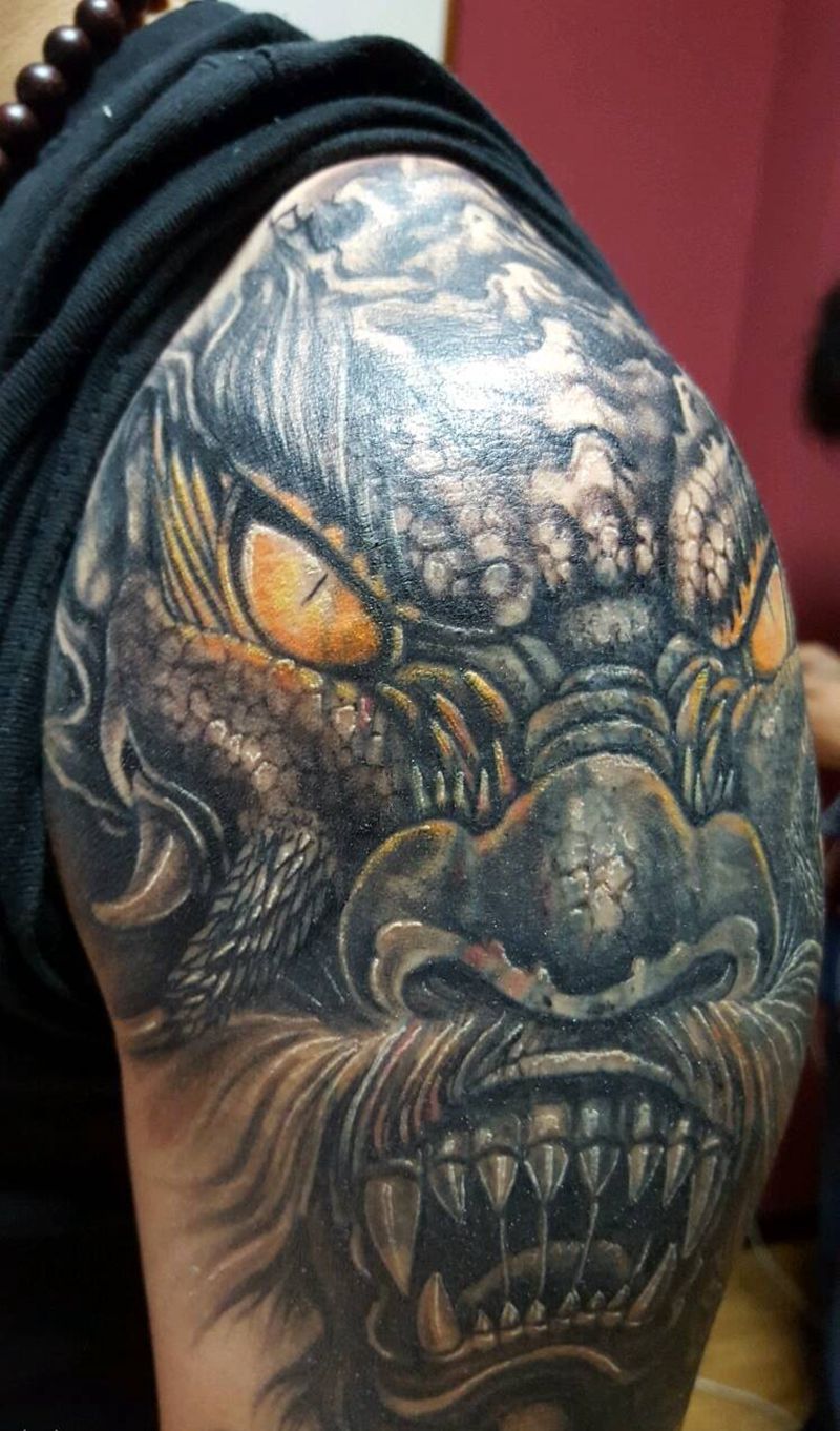 邪龙遮盖纹身图片_肩部传统动物宗教成品纹身图案