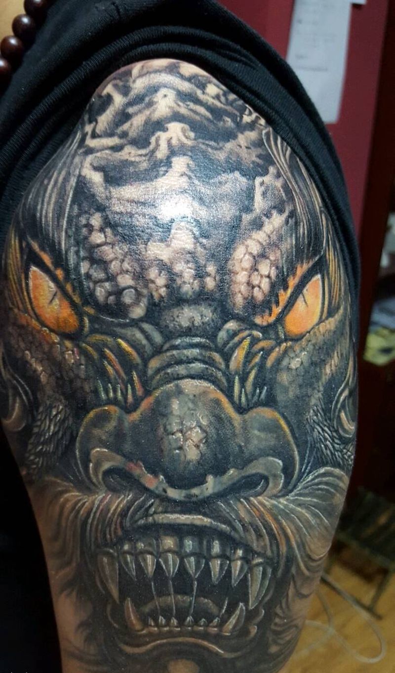 邪龙遮盖纹身图片_肩部传统动物宗教成品纹身图案