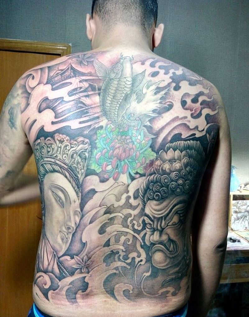 满背添加纹身图片_背部传统宗教纹身图案