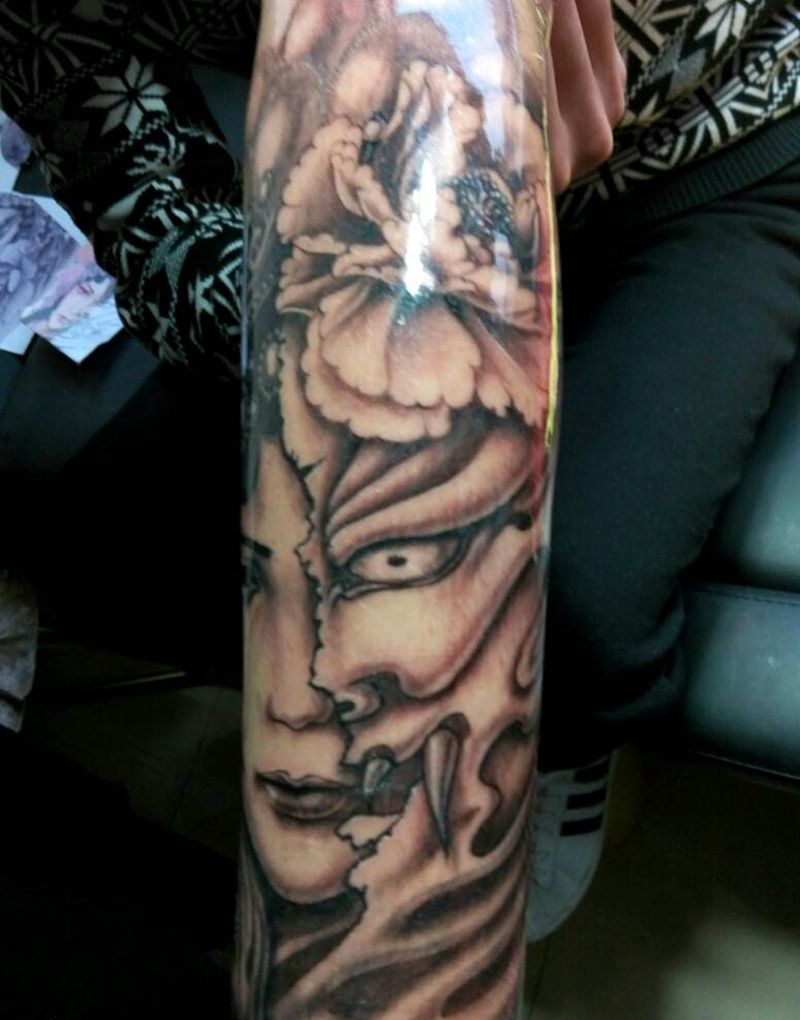 当前位置: 首页 >江苏省苏州市纹身店-鬼舞刺青·旗舰店纹身图案>半面花旦纹身图片_手臂传统肖像人物成品纹身图案