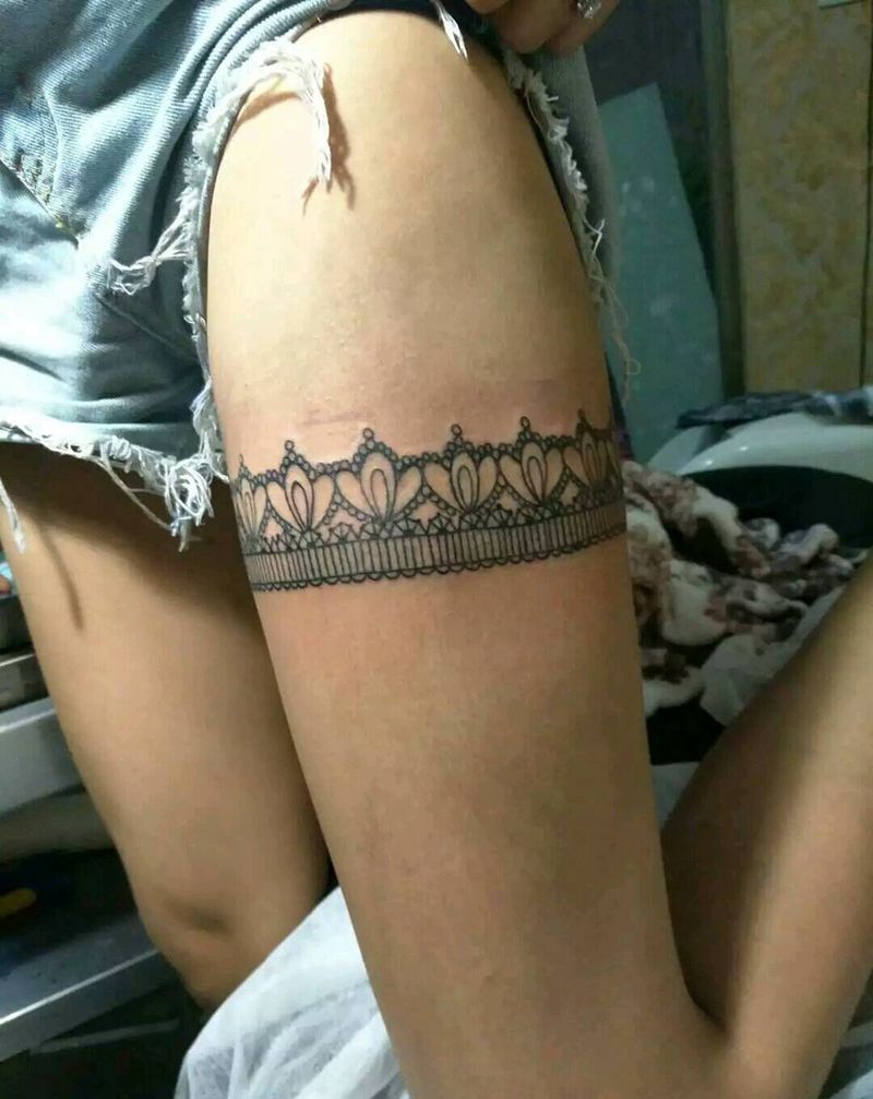 当前位置: 首页 >江苏省苏州市纹身店-兄弟纹身馆(吴中分店)纹身图案>蕾丝纹身图片_腿部清新几何图腾成品纹身图案