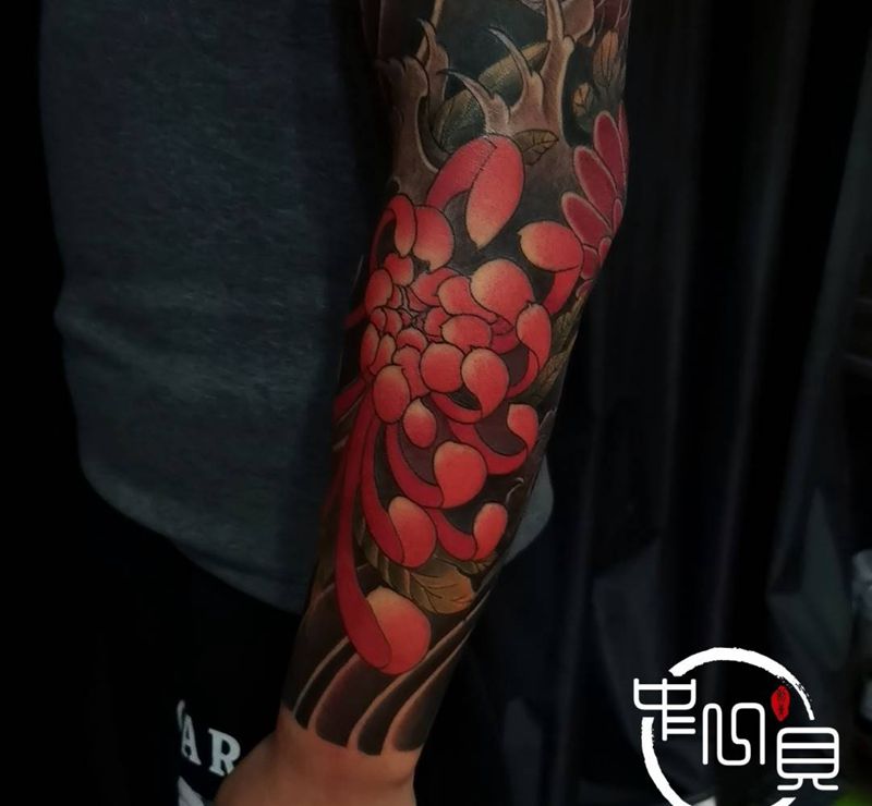 当前位置: 首页 >江苏省苏州市纹身店-苏州中一贝刺青工作室纹身图案>传统锦鲤纹身图片_手臂老传统纹身图案