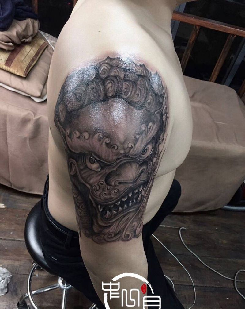 当前位置: 首页 >江苏省苏州市纹身店-苏州中一贝刺青工作室纹身图案>福狮纹身图片_手臂纹身图案