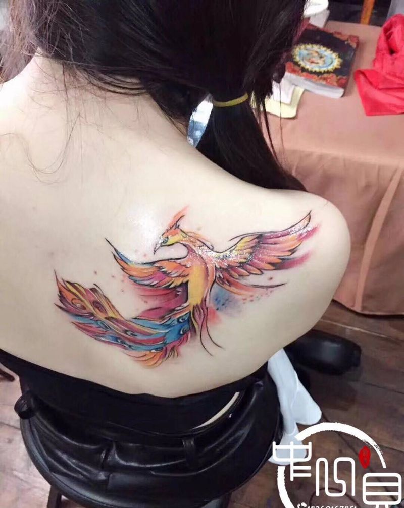 当前位置: 首页 >江苏省苏州市纹身店-苏州中一贝刺青工作室纹身图案>水墨凤纹身图片_背部纹身图案