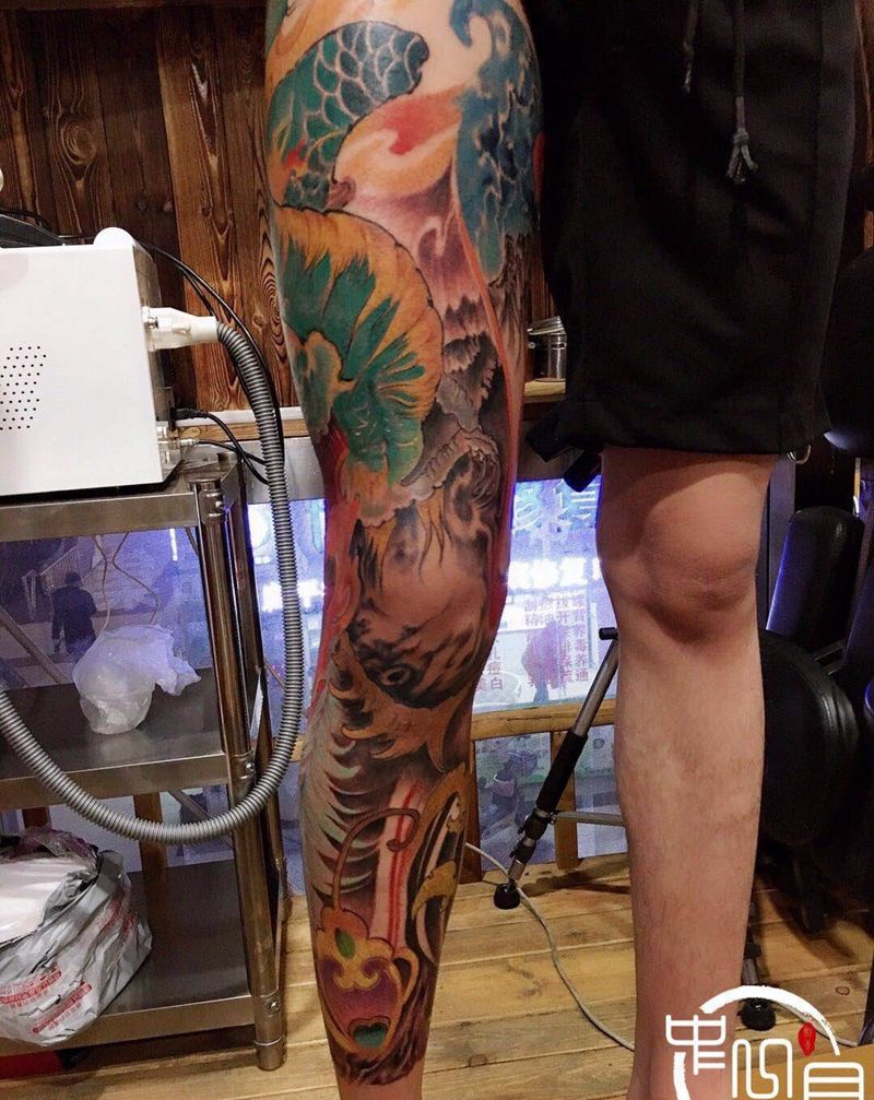 • T网红王老大花腿龙纹身图片_腿部新传统纹身图案