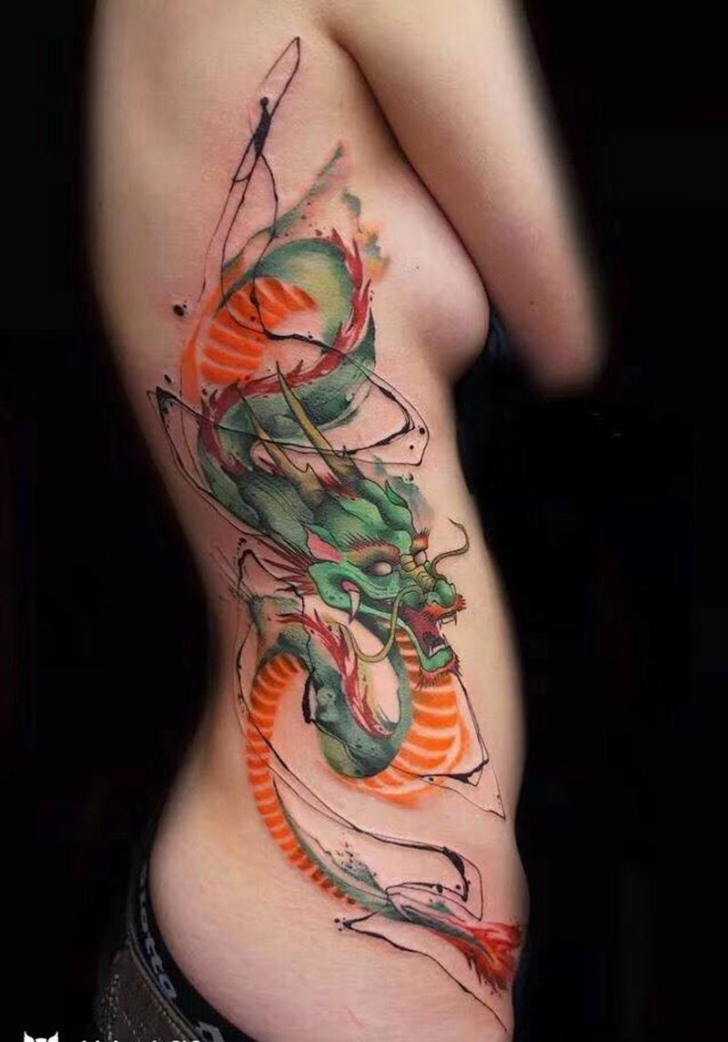 • T网红王老大花腿龙纹身图片_腿部新传统纹身图案