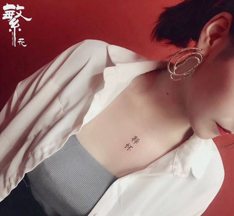 • T关于私处得爱!纹身图片_成品腹部清新字符图腾纹身图案