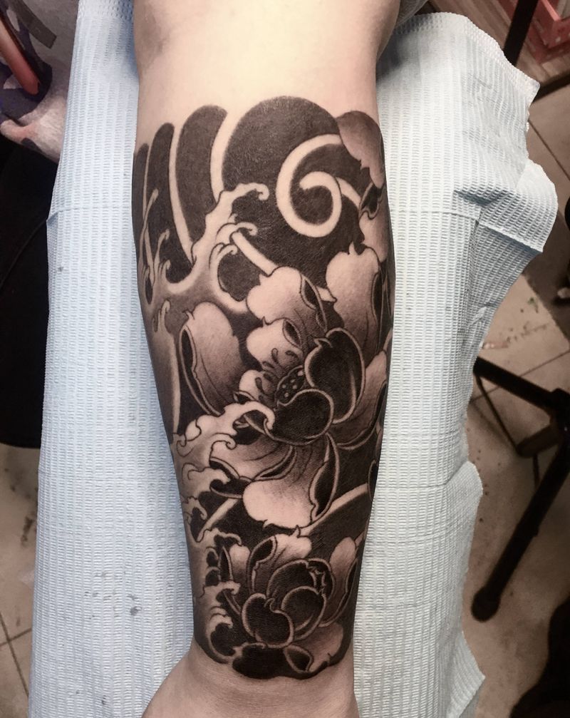 当前位置: 首页 >江苏省苏州市纹身店-龙汉刺青纹身图案>水浪 荷花纹身图片_手臂脚部老传统新传统荷花 水浪纹身图案