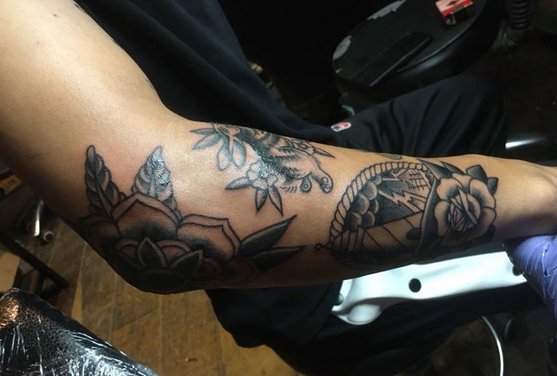 old school拼接花臂纹身图片_手臂腿部Old SchoolNew School拼接花臂纹身图案