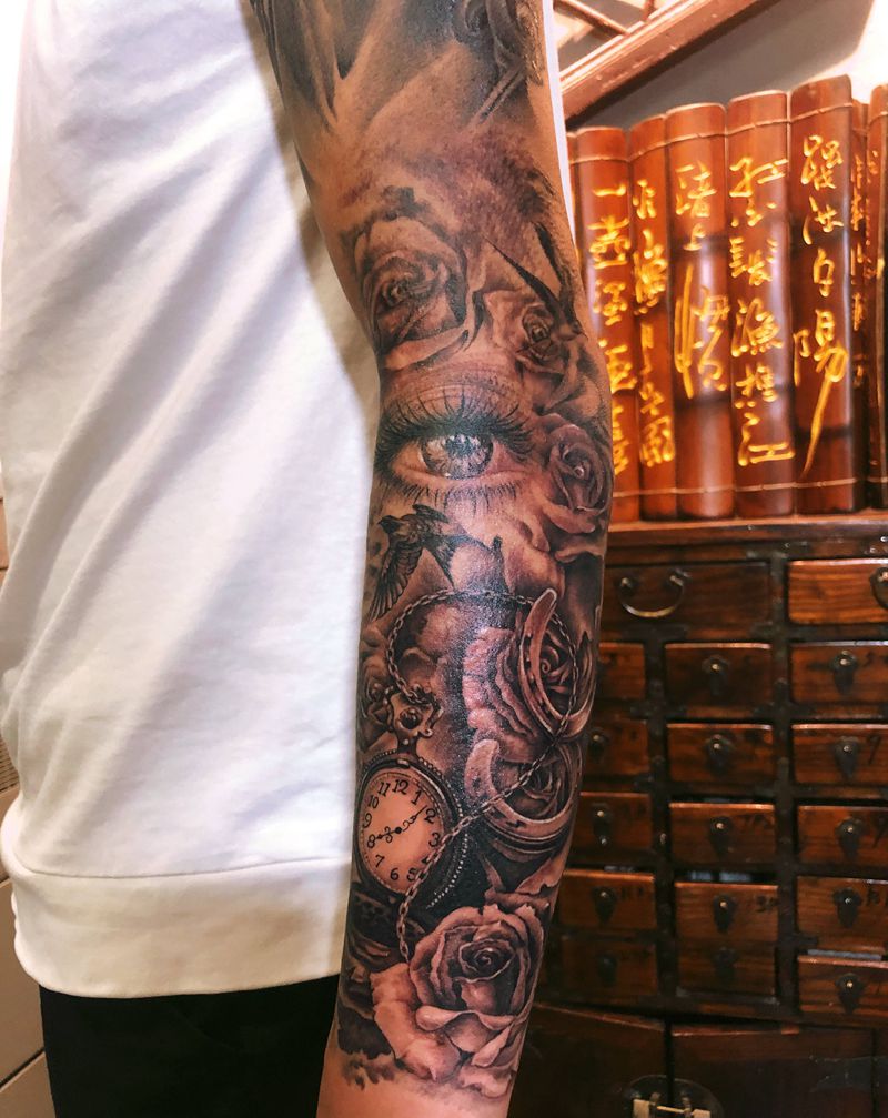 当前位置: 首页 >江苏省苏州市纹身店-苏州大千刺青工作室纹身图案>包臂纹身图片_手臂纹身图案