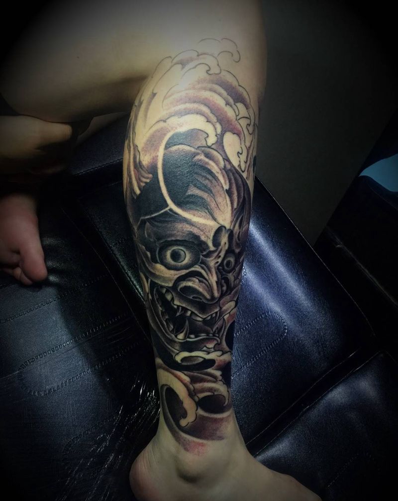 • T网红王老大花腿龙纹身图片_腿部新传统纹身图案