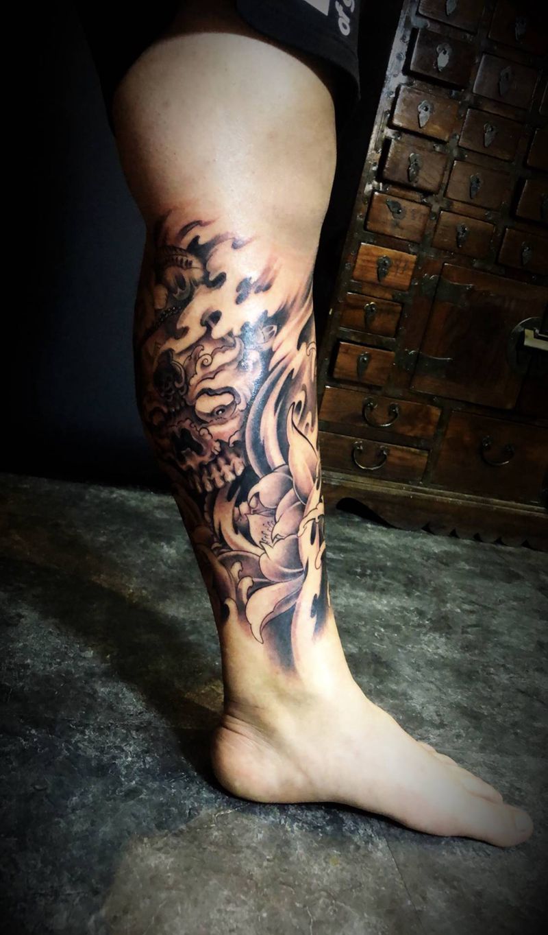 当前位置: 首页 >江苏省苏州市纹身店-苏州大千刺青工作室纹身图案>包小腿纹身图片_腿部新传统纹身图案