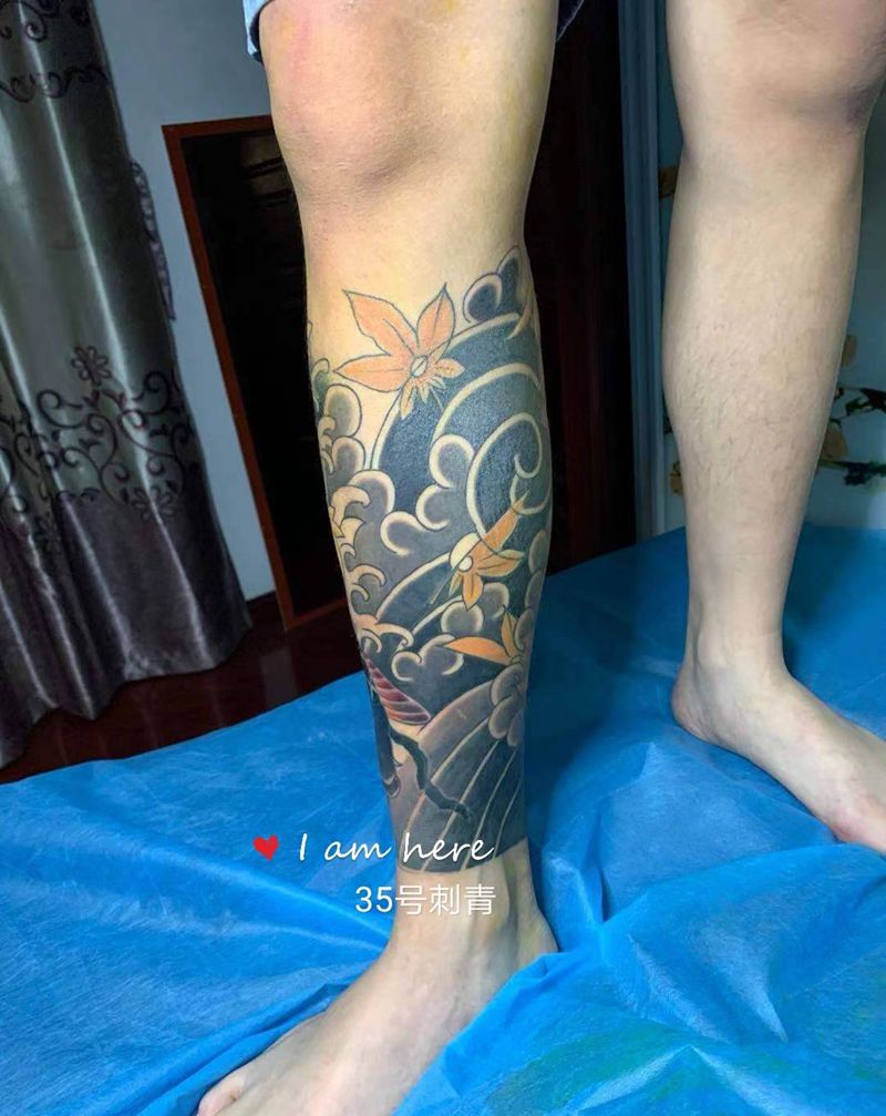 • T网红王老大花腿龙纹身图片_腿部新传统纹身图案