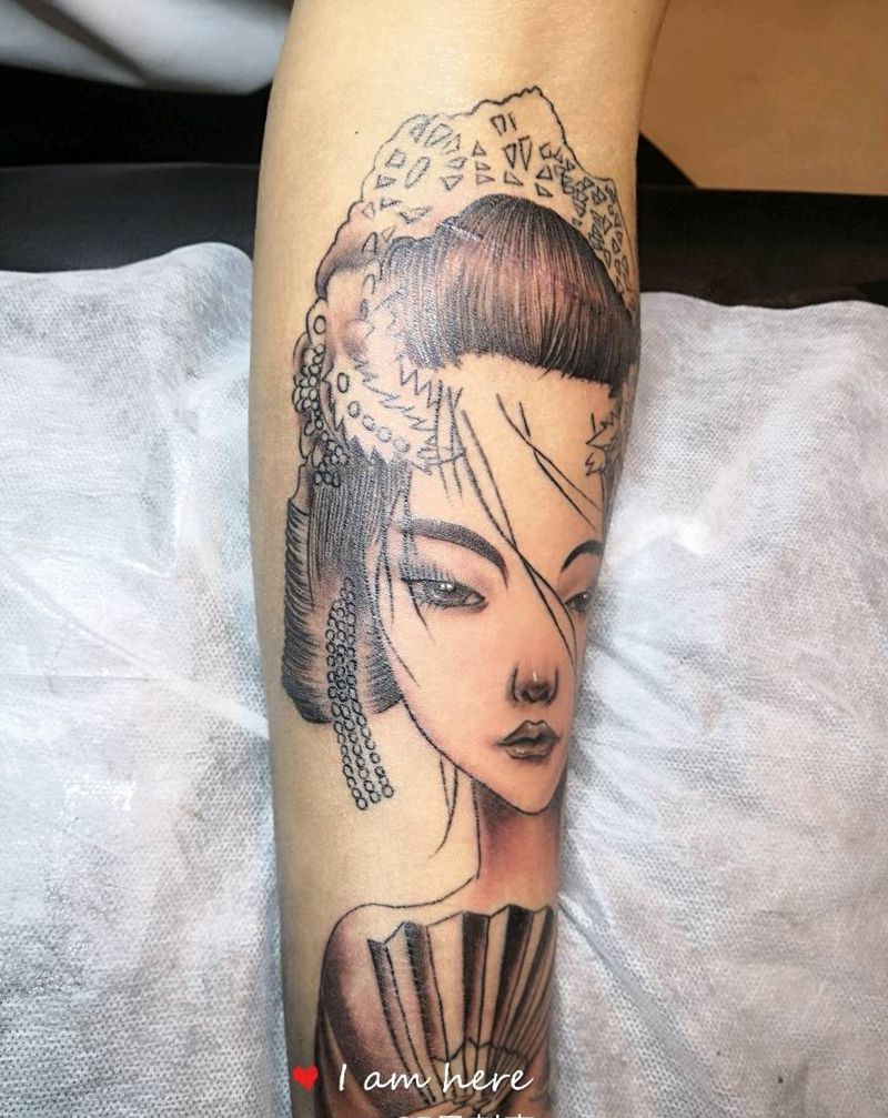 当前位置: 首页 >江苏省苏州市纹身店-35号刺青工作室纹身图案>独特设计艺伎纹身图片_手臂纹身图案