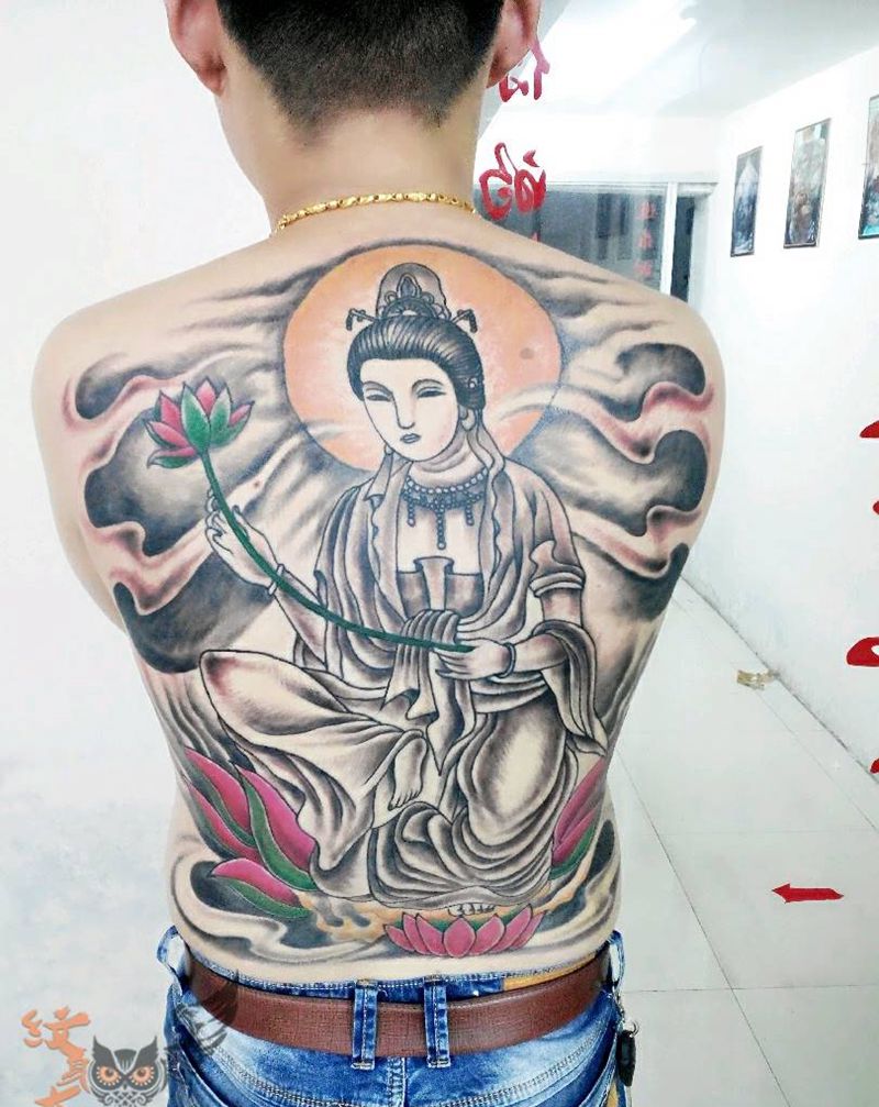黑灰满背纹身图案
