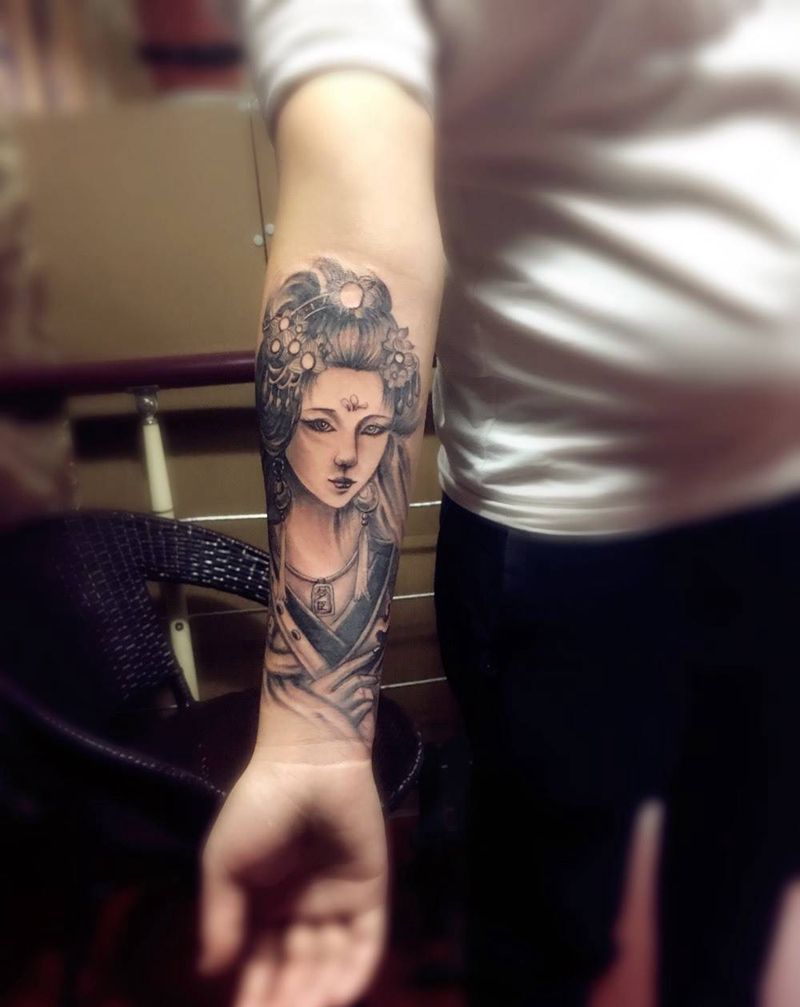 当前位置: 首页 >江苏省苏州市纹身店-昆山洪.纹刺纹身店纹身图案>小臂艺妓纹身图片
