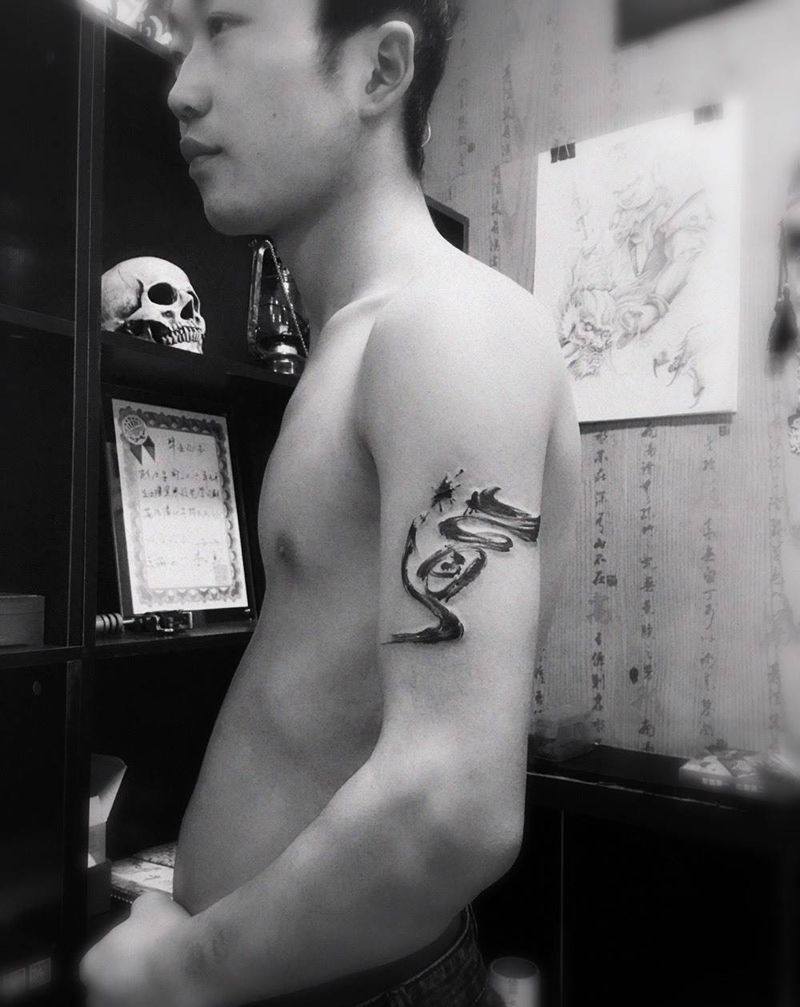 大臂 道字纹身图片_成品手臂清新纹身图案