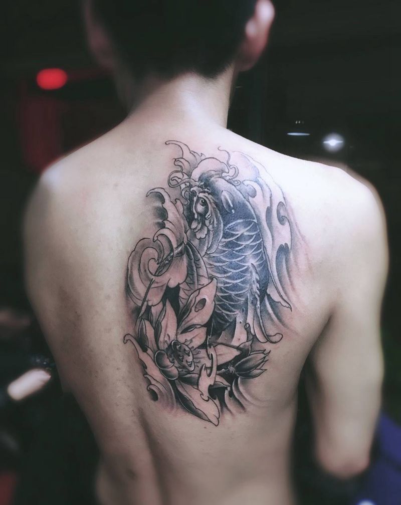 当前位置: 首页 >江苏省苏州市纹身店-昆山洪.纹刺纹身店纹身图案>肩部鲤鱼纹身图片_成品肩部传统动物纹身图案