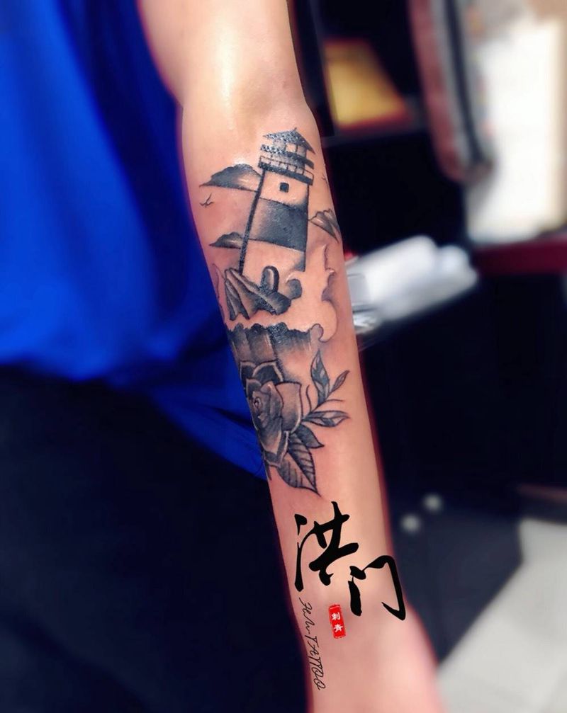 当前位置: 首页 >江苏省苏州市纹身店-昆山洪.纹刺纹身店纹身图案>小臂灯塔纹身图片