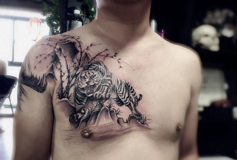 当前位置: 首页 >江苏省苏州市纹身店-昆山洪.纹刺纹身店纹身图案>胸口 老虎 修改纹身图片