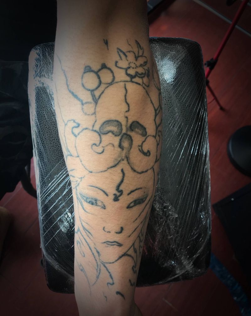 当前位置: 首页 >江苏省苏州市纹身店-昆山洪.纹刺纹身店纹身图案>小臂艺伎纹身图片_手臂新传统纹身图案