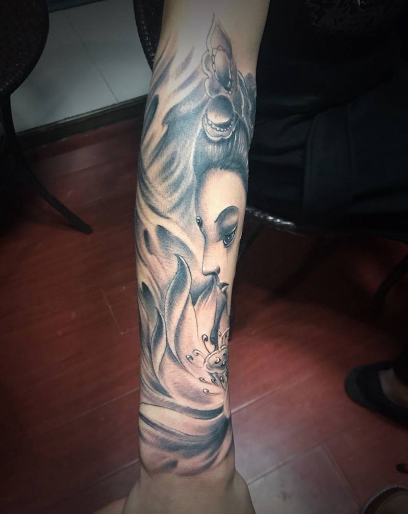 当前位置: 首页 >江苏省苏州市纹身店-昆山洪.纹刺纹身店纹身图案>小臂艺伎纹身图片