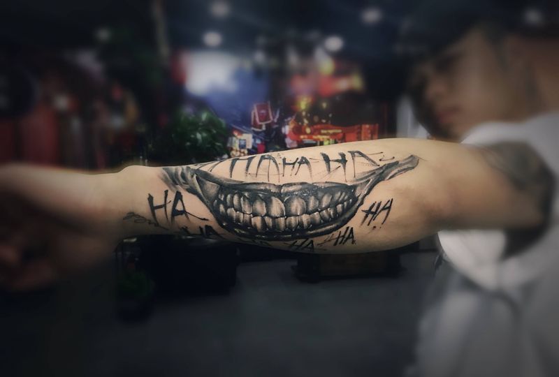 小丑的微笑纹身图片_手臂新传统纹身图案