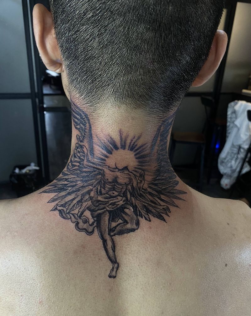 当前位置: 首页 >江苏省苏州市纹身店-昆山纹身天刺堂纹身图案>堕落天使纹身图片_颈部纹身图案