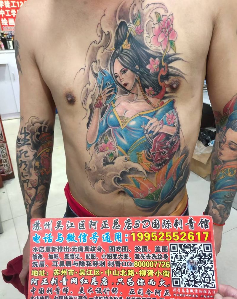 当前位置: 首页 >江苏省苏州市纹身店-阿正刺青网红总店纹身图案>艺伎立体欣赏纹身图片_腹部背部新传统水墨艺伎荷花纹身图案