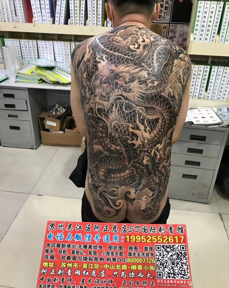 当前位置: 首页 >江苏省苏州市纹身店-阿正刺青网红总店纹身图案>大后背多图立体欣赏纹身图片_背部臀部新传统水墨鲤鱼九龙拉棺龙王纹身图案
