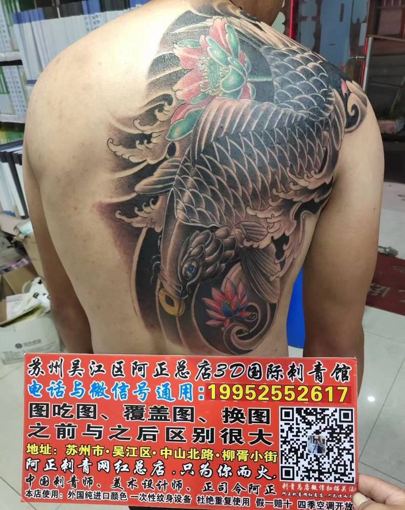 当前位置: 首页 >江苏省苏州市纹身店-阿正刺青网红总店纹身图案>后背鲤鱼立体效果纹身图片_肩部背部老传统水墨鲤鱼莲花立体纹身图案