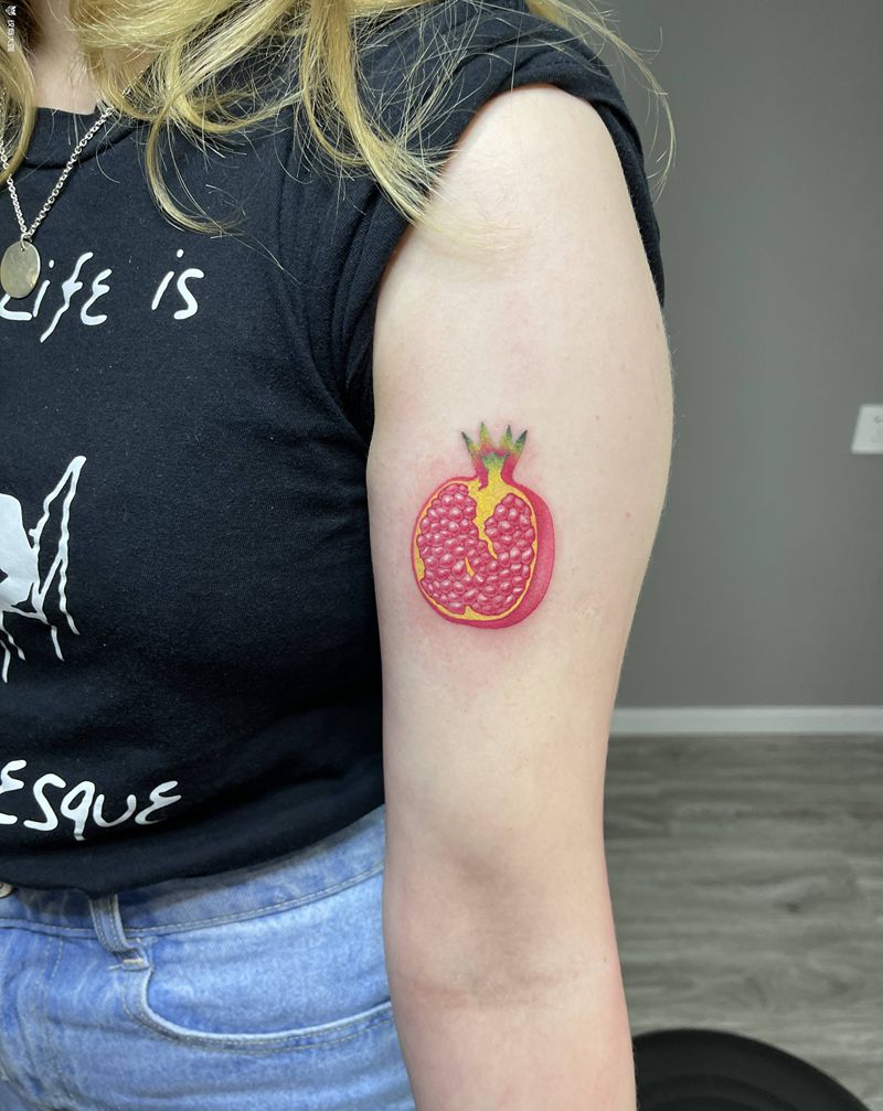 石榴纹身图片_腿部手臂New School水彩纹身图案