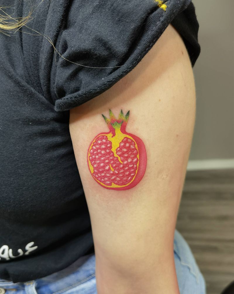 石榴纹身图片_腿部手臂New School水彩纹身图案