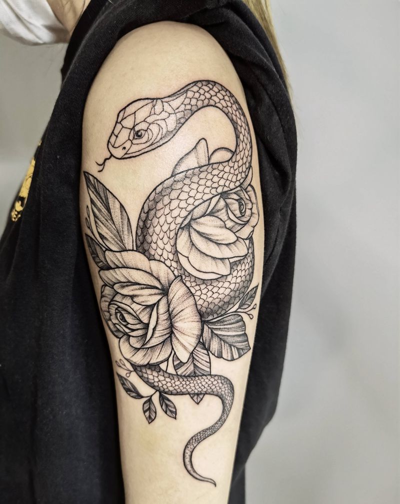 当前位置: 首页 >江苏省苏州市纹身店-太仓瀚源刺青纹身图案>蛇纹身图片_肩部点刺New School纹身图案