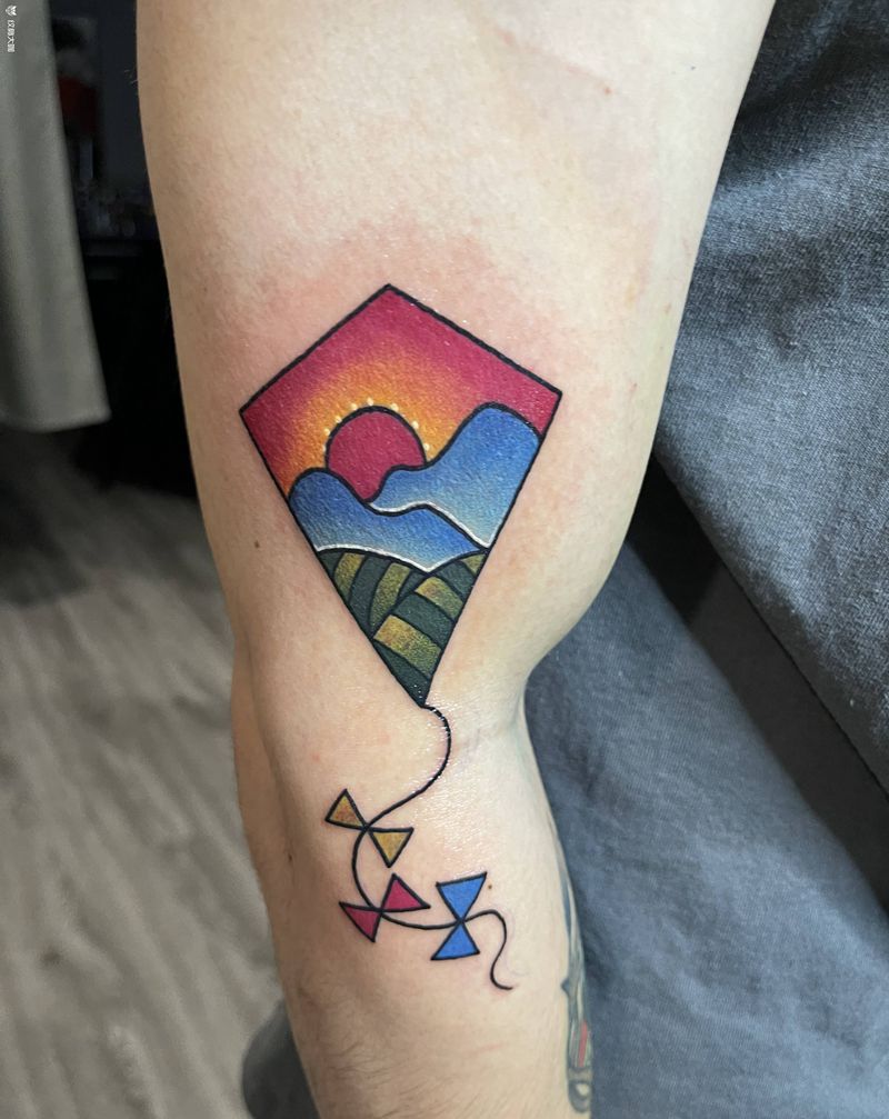 当前位置: 首页 >江苏省苏州市纹身店-太仓瀚源刺青纹身图案>风筝纹身图片_手臂腿部Old School水彩纹身图案