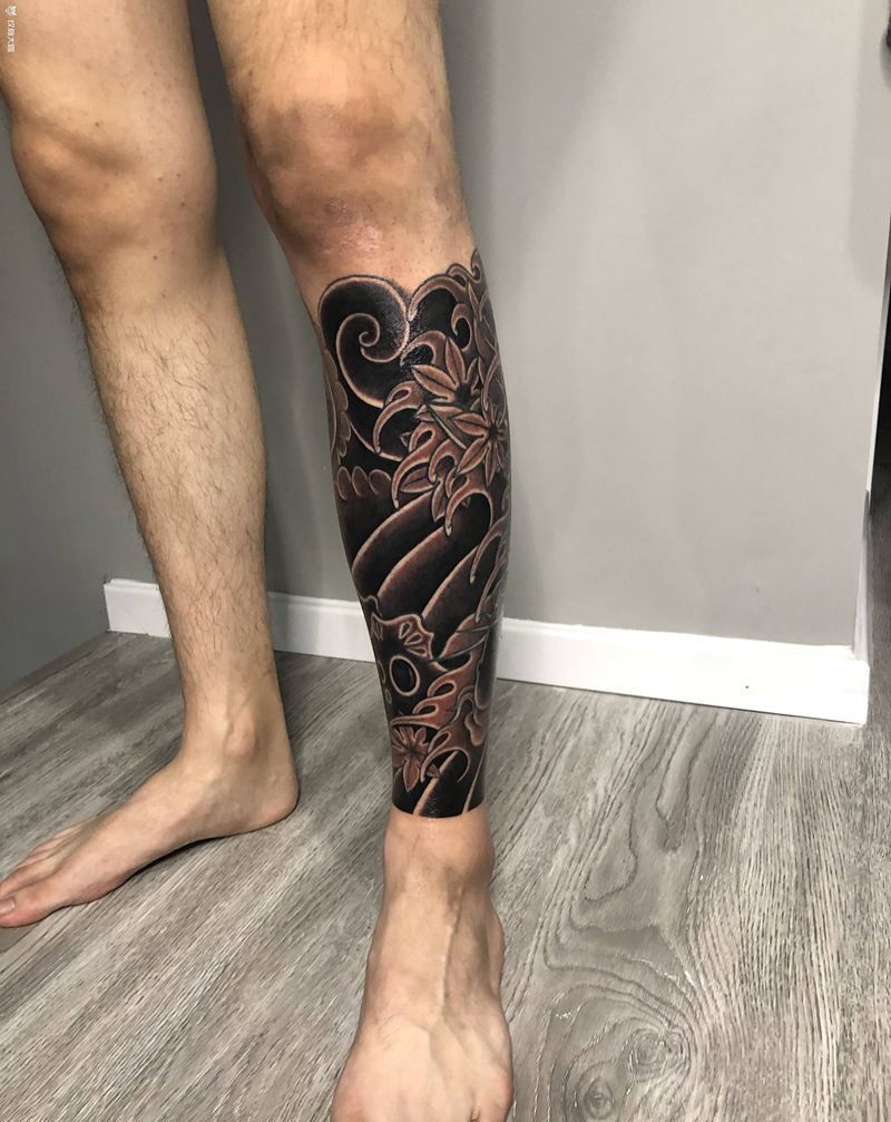 • T网红王老大花腿龙纹身图片_腿部新传统纹身图案