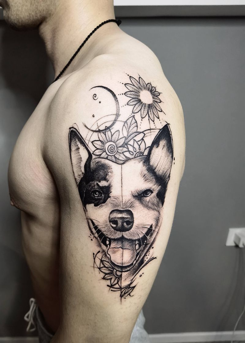 当前位置: 首页 >江苏省苏州市纹身店-太仓瀚源刺青纹身图案>狗头生鲜纹身图片_臀部腿部欧美写实几何纹身图案