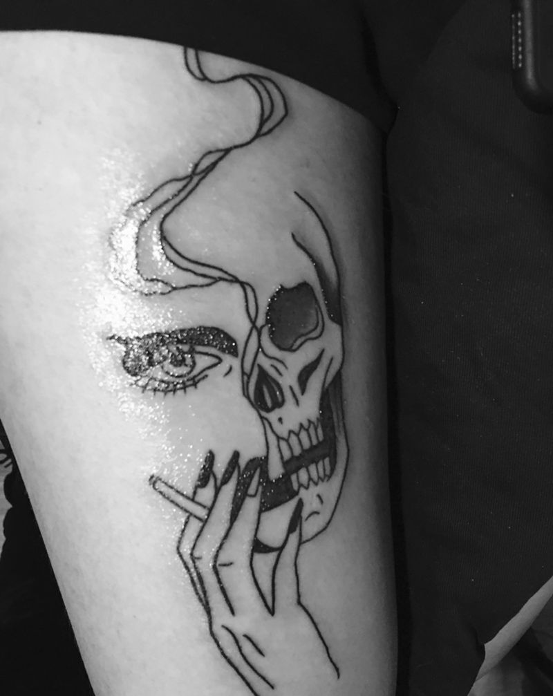 骷髅纹身图片_成品背部脚部腿部腰部欧美几何鬼神纹身图案