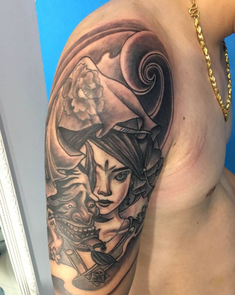 • 纹身吧推荐的披肩图腾半胛纹身图案作品展示