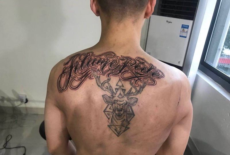 当前位置: 首页 >江苏省苏州市纹身店-太仓瀚源刺青纹身图案>奇卡诺花体字纹身图片_成品肩部背部手部传统写实几何植物宗教字符纹身图案