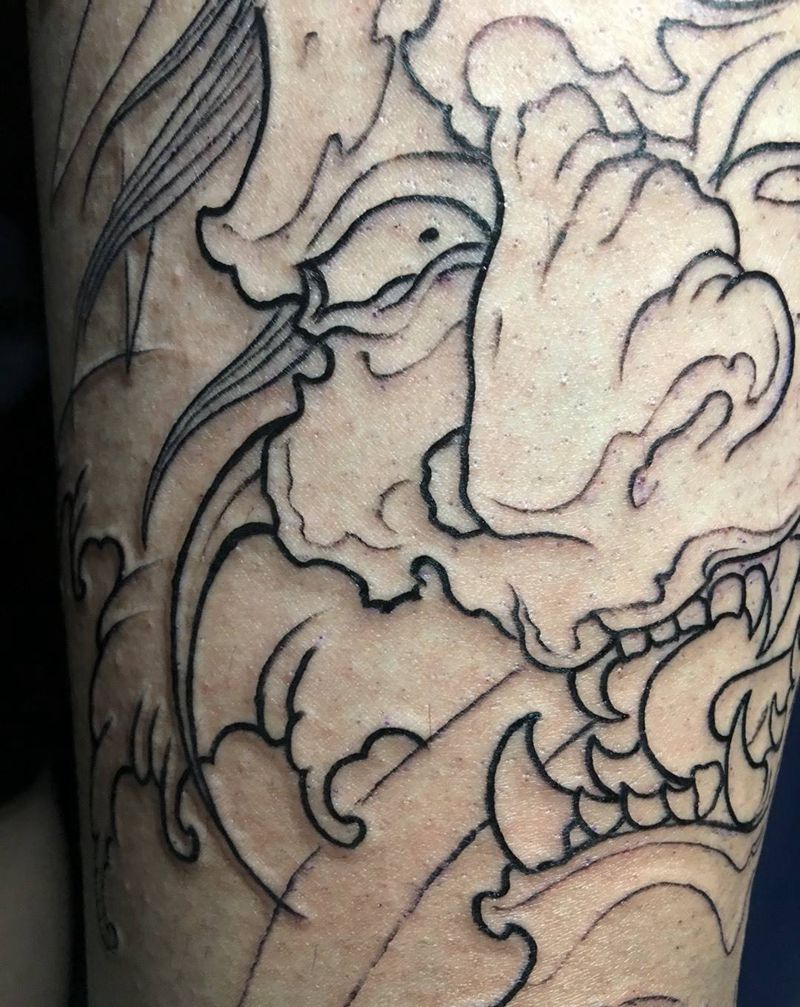 • T网红王老大花腿龙纹身图片_腿部新传统纹身图案