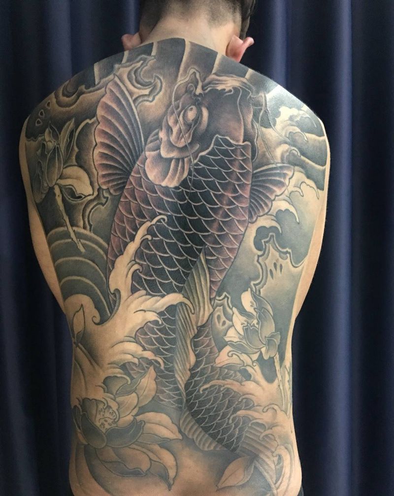 当前位置: 首页 >江苏省苏州市纹身店-太仓瀚源刺青纹身图案>鱼纹身图片_成品传统动物原创背部纹身图案